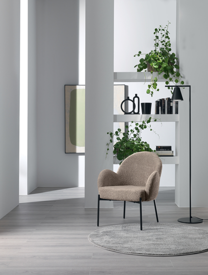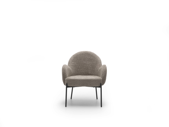 Armchair upholstered in bouclé fabric. Painted meta legs. |