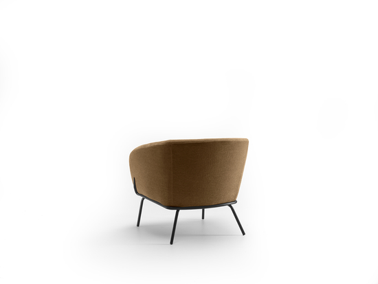 Fauteuil revêtu de velours Marron. Pieds en métal laqué Noir.