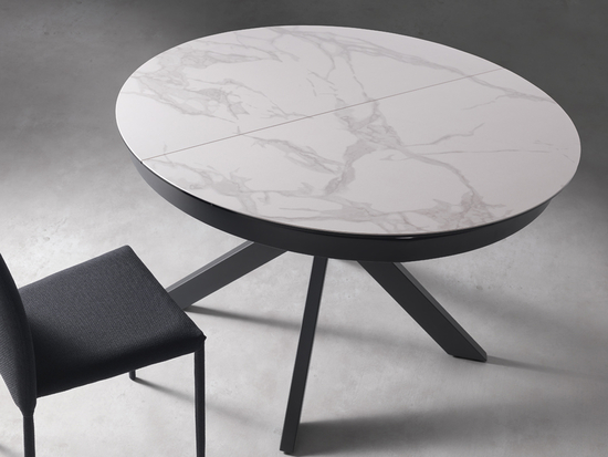 Una forma iconica che nasce dall’incontro tra equilibrio e dinamismo: il basamento scultoreo diventa protagonista, sostenendo il piano con forza e leggerezza visiva. Un tavolo che interpreta lo spazio con personalità, pensato per chi cerca un segno distintivo capace di unire design e carattere in modo naturale.