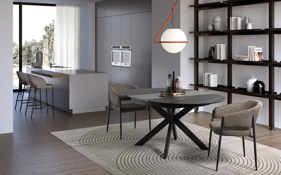 Una forma iconica che nasce dall’incontro tra equilibrio e dinamismo: il basamento scultoreo diventa protagonista, sostenendo il piano con forza e leggerezza visiva. Un tavolo che interpreta lo spazio con personalità, pensato per chi cerca un segno distintivo capace di unire design e carattere in modo naturale.